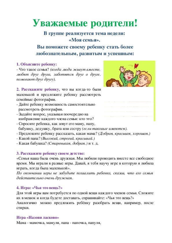 рекомендации для родителей: